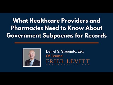 Attorney Daniel G. Giaquinto, Esq., discusses what physicians, pharmacies, and other healthcare providers need to know about government subpoenas and what to do when they receive one.